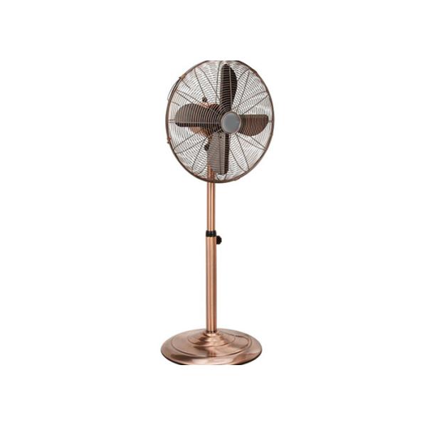 This retro standing fan is sleek and quiet. The timeless design adds flare and style to any room of the house. With three speeds, the 45 watt motor will keep you cool and comfortable. Bask in a comfortable, cooler room at a fraction of the cost of an air conditioner, or use the pedestal fan to help keep consistent air flow through your bedroom, living room, family room, office, gym, garage, or patio.